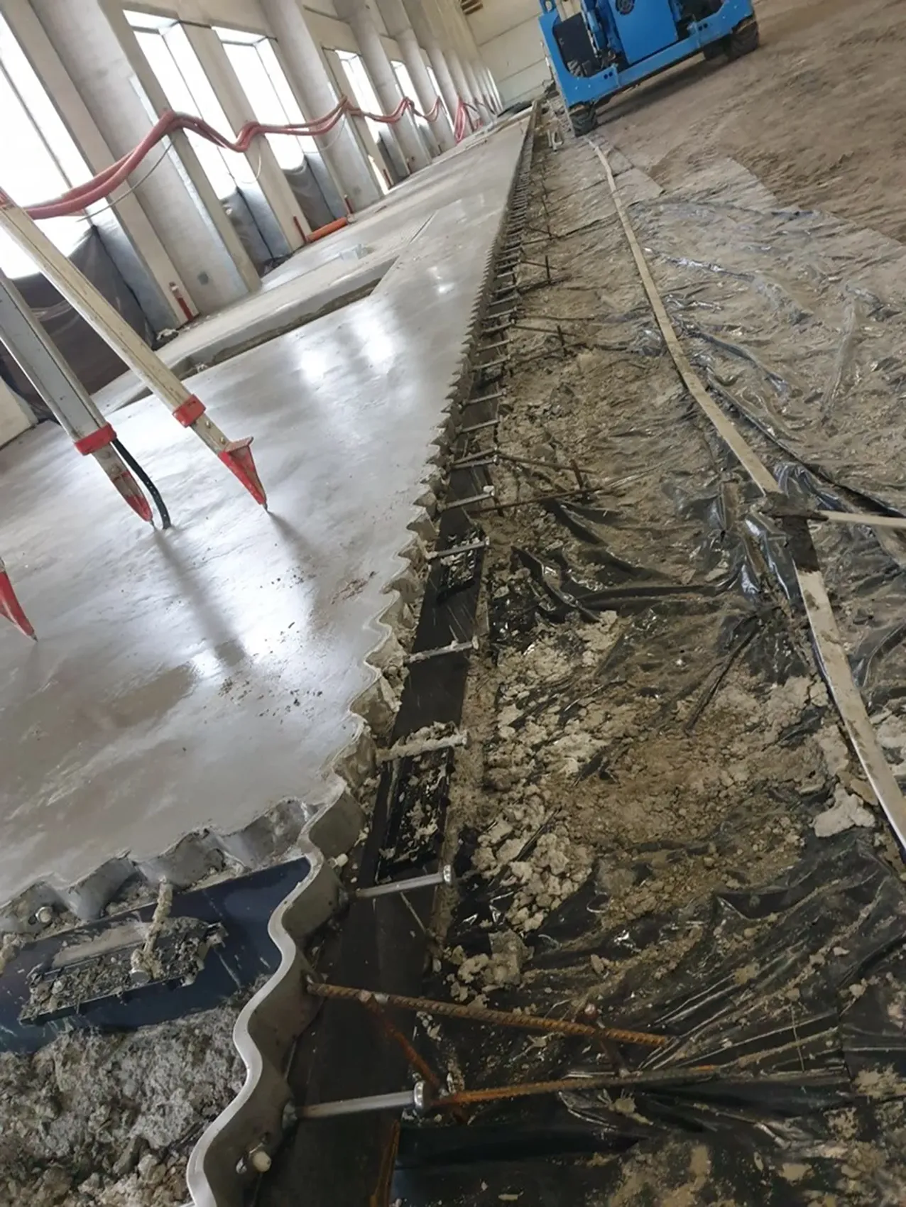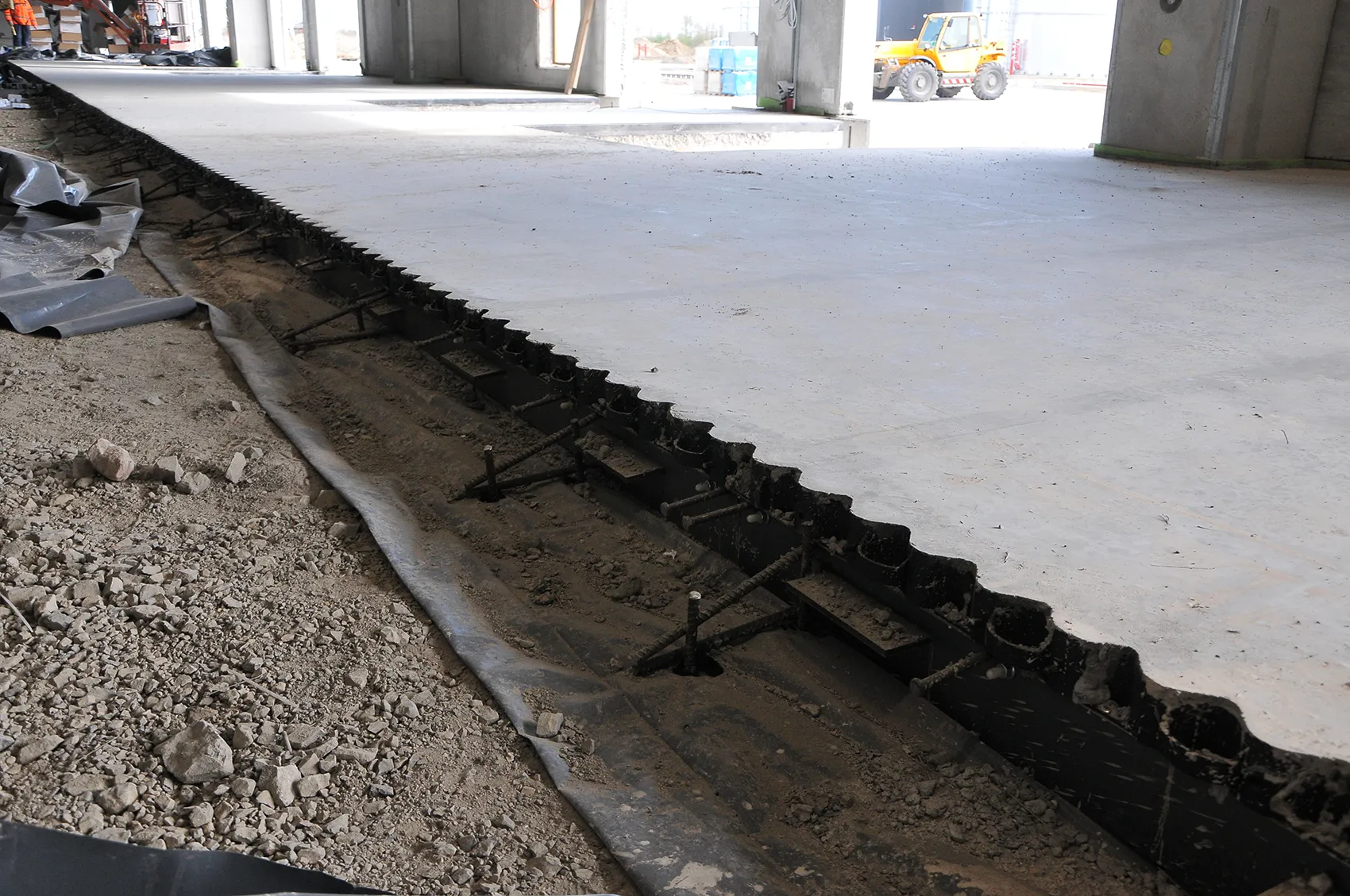 El espesor de la losa y su composición (por ejemplo, hormigón armado o con fibra estructural) influyen directamente en la selección del perfil. El perfil de dilatación debe integrarse correctamente en la estructura: un perfil demasiado bajo no protegerá los bordes, mientras que uno demasiado alto puede provocar fisuras y concentraciones de tensión.