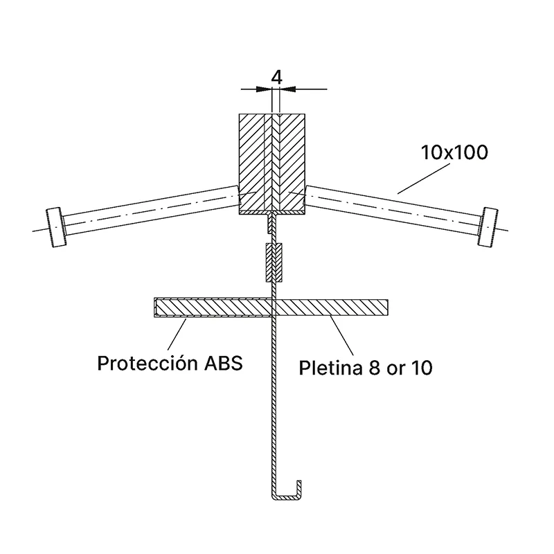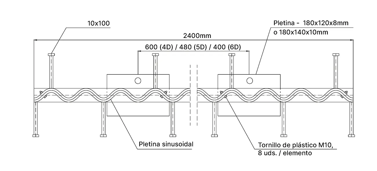 - Distancia estándar entre las pletinas: 600mm (tipo 4D)